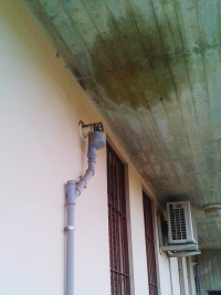Francesco Riva ci manda un esempio di scaldabagno non collegato ad una canna collettiva, dove addirittura i condomini, oltre che aver realizzato una canna fumaria a norma, devono subire i fumi si carico dell'apparecchio ogni volta che si apre l'acqua sanitaria. Anche in estate. Assurdo.